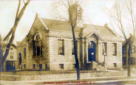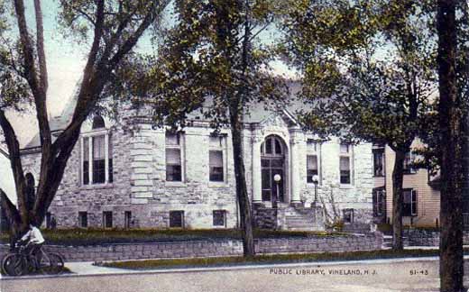A more colorful image of the Vineland Public Library from the 1920s or so