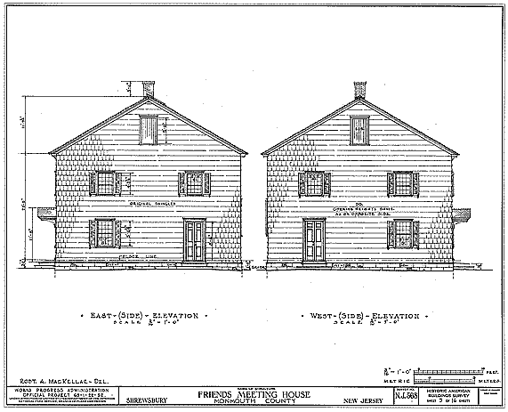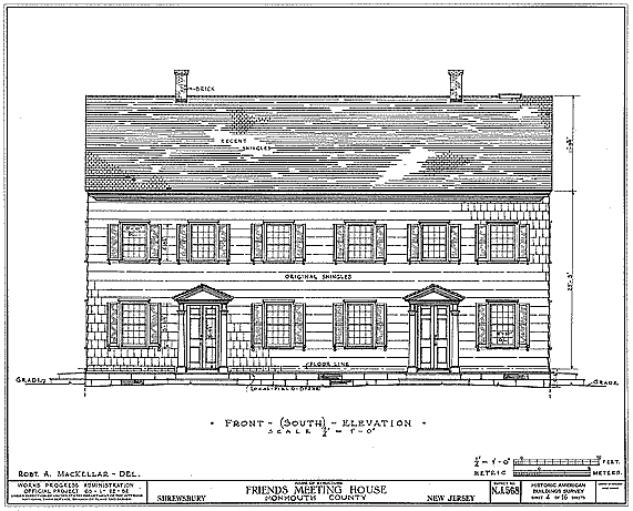 ![]() HABS drawing of the front of Shrewsbury Meeting from 1936